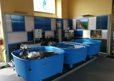 Modelli in dimensioni reali dei grandi vertebrati marini accompagnano i visitatori fino all’incontro con le tartarughe, osservabili mentre nuotano nelle loro vasche.